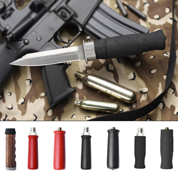 Этим ножом можно не только резать, но и бить. В корпус оружия помещен сверхпрочный баллон, содержащий гигантскую порцию сжатого замороженного газа. Одно нажатие кнопки - и противник моментально свалится с ног от мощнейшего удара.