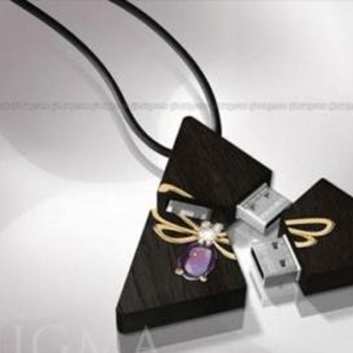 Подвеска с длинным названием Gresso 192 GB USB Pendant - забавный аксессуар из дерева и белого золота с драгоценными камнями. Но главная «изюминка» украшения - три флешки, общая память которых достигает 192 GB.