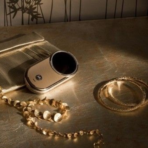 Телефон покрыт золотом 18 карат и дополнен 34 бриллиантами. Дисплей новинки украшают 30 бриллиантов, еще 4 находятся на навигационных клавишах.