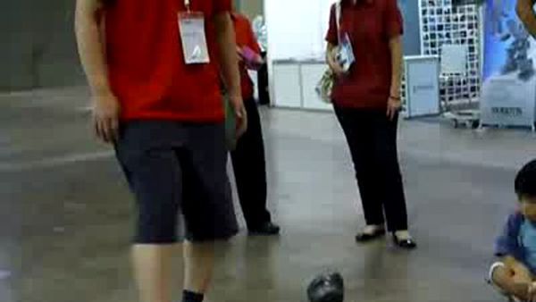 Маленький андроид под названием DARwIn-LC (Low Cost) покорил сердца зрителей, тем что, как маленький ребенок, неустанно следовал за мячиком, падал, вставал и, достигнув желанной цели, бил по нему.