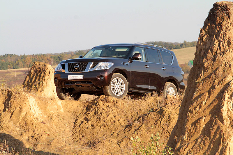 Зато ходовые характеристики Nissan Patrol как на трассе, так и на бездорожье, получились просто отличными. А чтобы сделать управление многочисленными вспомогательными системами проще, инженеры предложили упрощенный алгоритм выбора внедорожных режимов одним нажатием соответствующей кнопки: ON ROAD (дорога), ROCK (камни), SNOW (снег) и SAND (песок).
