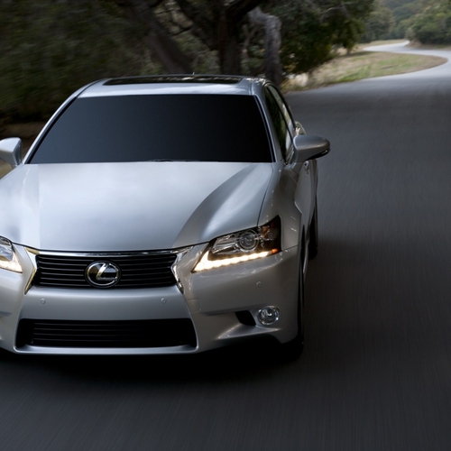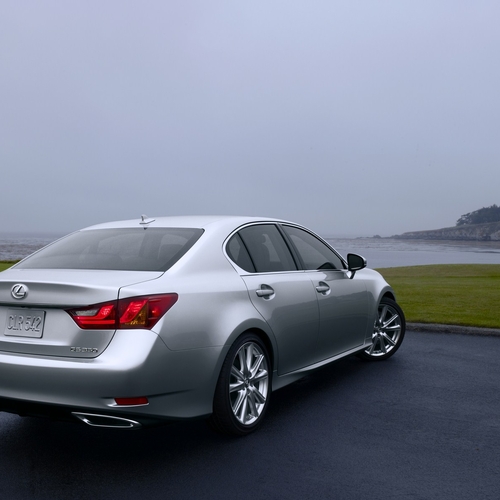 Главная внешняя отличительная черта нового поколения Lexus GS - эффектная радиаторная решетка, которая, судя по всему, будет кочевать по всему модельному ряду Lexus. Кроме того, в блоках передних фар Lexus GS появились полоски светодиодов дневного света, а весь кузов нового седана стал более массивным и солидным.