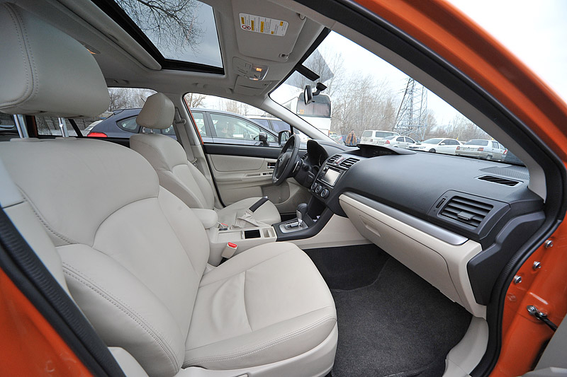 В салоне Subaru XV также полностью самобытный, а материалы отделки, по сравнению с Impreza XV, стали значительно качественнее и дороже. Нельзя назвать интерьер революционным, но основными органами управления удобно пользоваться и просто есть, ща что зацепиться глазом.