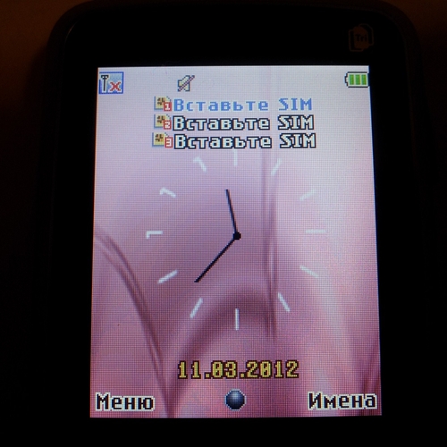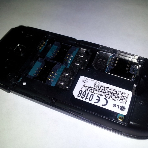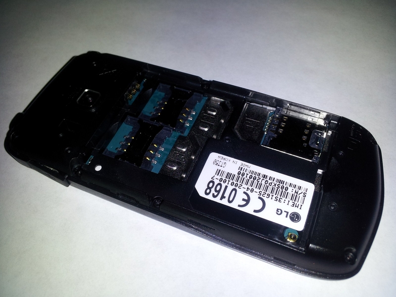 За ним расположены три "фирменных" слота для SIM-карт. Все они пронумерованы, поэтому ошибиться невозможно. К сожалению, не удалось проверить, имеет ли каждый из них собственный радиомодуль. Но мои подозрения указывают на то, что всё-таки в телефоне используется один радиомодуль для всех SIM-карт, т.е. позвонить на другую SIM во время разговора не получится.