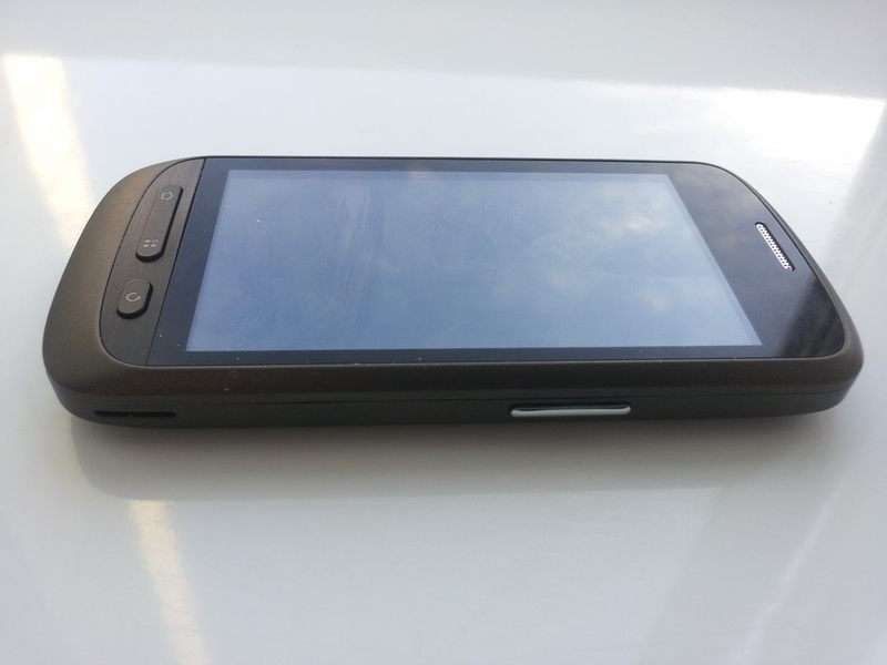 Лицевую часть занимает большой, как для бюджетных моделей, 3,5-дюймовый дисплей. Внизу дисплея расположились три механические кнопки управления смартфоном - отсутствует привычная кнопка "поиск", а вверху - небольшая хромированная решётка для динамика.
