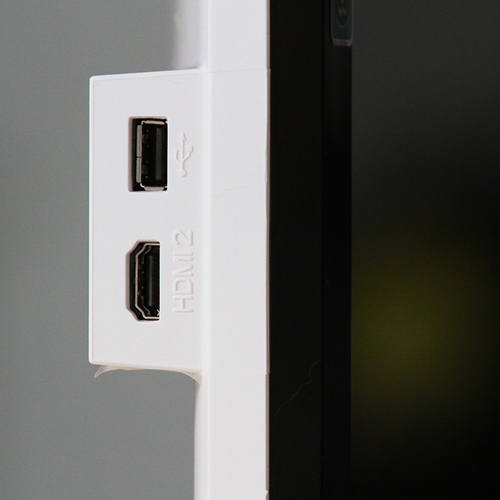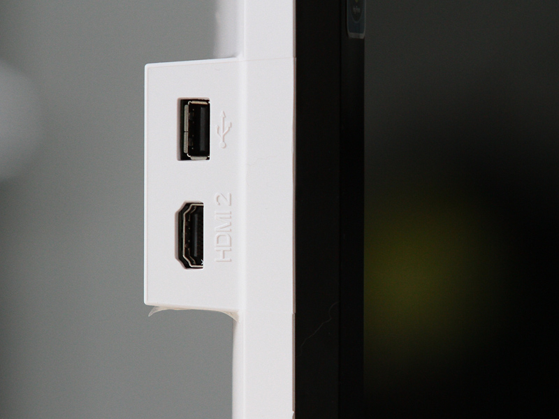 Помимо вышеуказанных входов, монитор порадовал наличием выходов USB и HDMI, расположенных на левом торце монитора, и ещё один USB выход на задней части. Таким образом, к монитору можно подключить любое USB 2.0 устройство и вывести изображение ещё на один монитор через HDMI. А концентратором выступает тот самый шнур, который используется для работы сенсора.