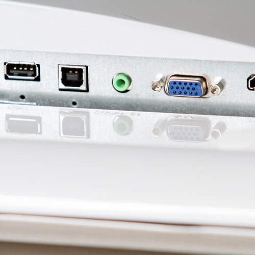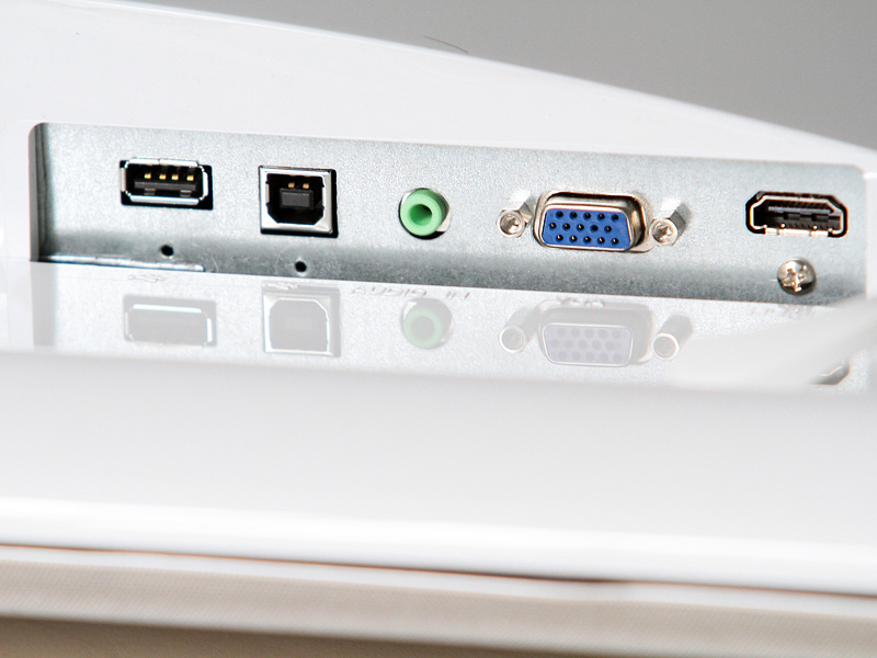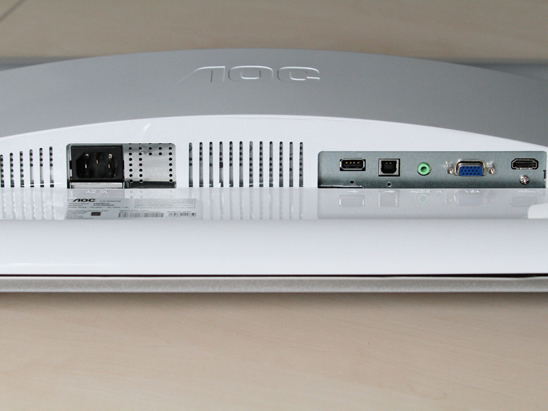 Входных интерфейсов у AOC e2239Fwt всего два: VGA и HDMI. Хотелось бы видеть здесь и DVI, но, поскольку монитор больше позиционируется для ноутбуков, то этих разъёмов будет достаточно. К сожалению, с изображением через VGA есть небольшая проблема с четкостью изображения - при высоком разрешении мелкий текст выглядит немного смазанным, но это скорее недостаток самого разъёма, который является аналоговым, а не цифровым. А вот с HDMI дело обстоит немного хуже, так как картинка получается недостаточно насыщенной в цветовом плане, но зато очень четкая.