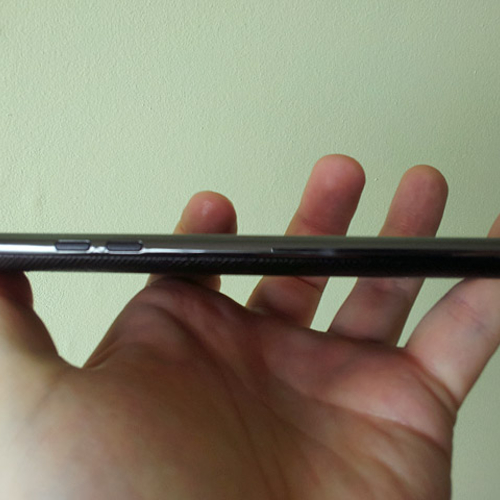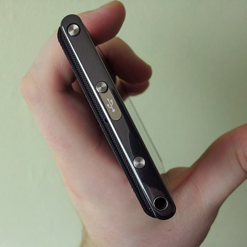 Левая грань занята под кнопки управления громкостью, а правая полностью свободна. Снизу расположен разговорный динамик, и лишь два винтика выдают кажущийся бесшовным корпус.