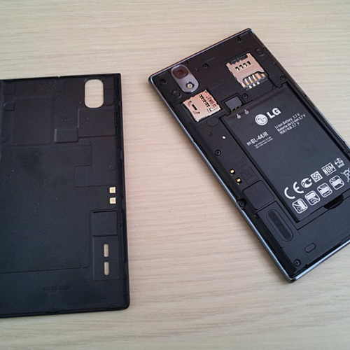 На тыльной стороне расположилась 8 Мп фотокамера со вспышкой, которая по традиции многих моделей LG расположена ближе к левому краю. Чуть ниже расположен внешний динамик, к сожалению, такое размещение заглушает его, когда телефон лежит на столе.