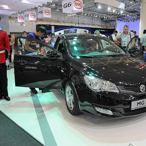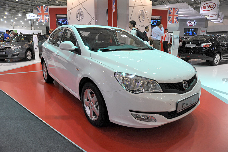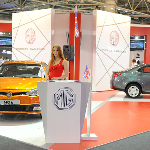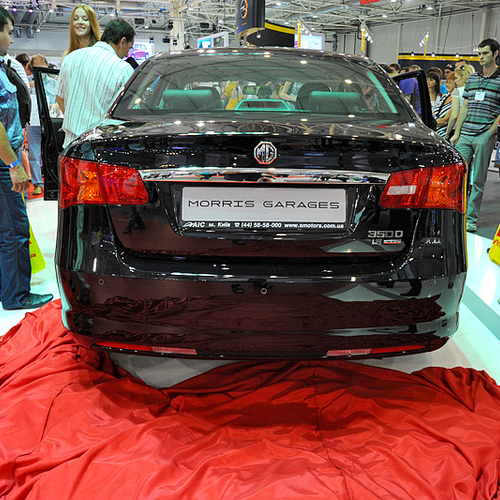 На юбилейном киевском автошоу SIA 2012 китайская марка британского происхождения Morris Garages представила среднеразмерный седан MG 350, эффектное появление которого привлекло внимание к стенду марки.