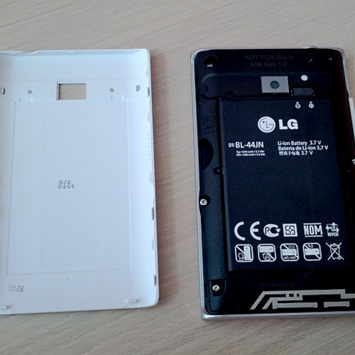 Так как LG Optimus L3 относится к бюджетному классу, то и ожидать отличительных особенностей не стоит. Весь корпус полностью выполнен из матового пластика. Даже лицевая панель покрыта не стеклом, а все тем же пластиком, только прозрачным, поэтому пленку с дисплея лучше не снимать, чтобы не поцарапать дисплей.