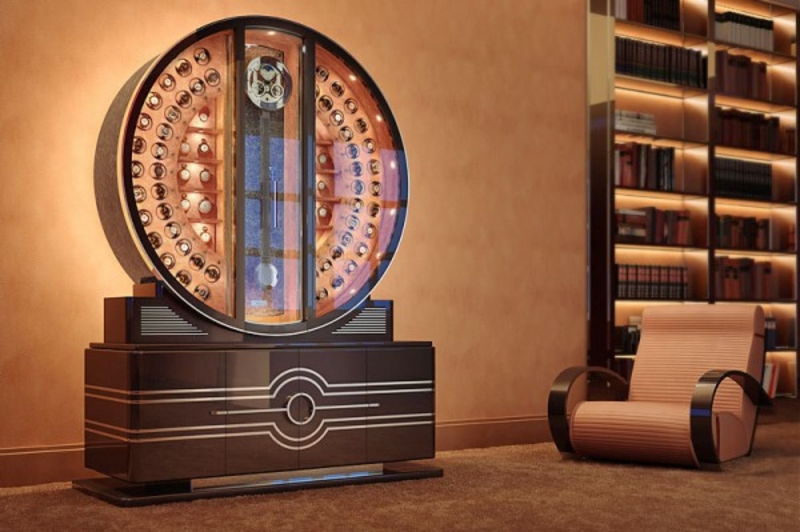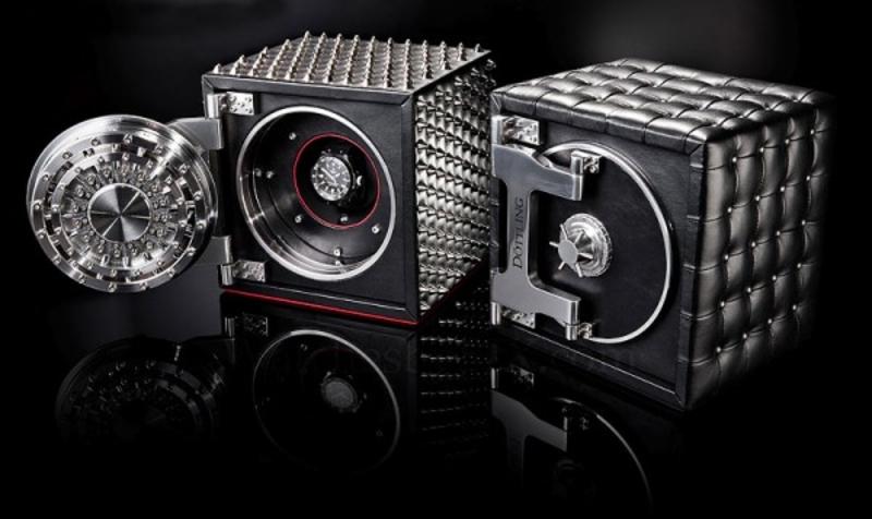Сейф Colosimo от Dottling размером 21х21х21 см весит всего 13 килограммов, но предлагает надежную защиту для драгоценных часов. Стоит такой сейф $22 тыс. Кроме этого, держатель с автоподзаводкой нужно покупать отдельно — за $18,6 тыс.