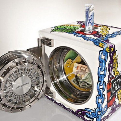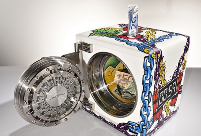 Сейф стилизован под знаменитое денежное хранилище дяди Скруджа из мультфильма “Утиные истории“. Над этим тайником, выпущенным в единственном экземпляре, поработала лондонская дизайнерская компания Year Zero, которая вручную раскрасила его различными мультипликационными надписями и рисунками.