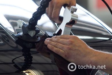 Суть этого ремонта состоит в том, что небольшую вмятину аккуратно вытягивают с помощью специального приспособления, по технологии, которая позволяет сохранить не поврежденной окрашенную поверхность. В результате, экономится время, деньги, а самое главное - автомобиль не теряет свой товарный вид.