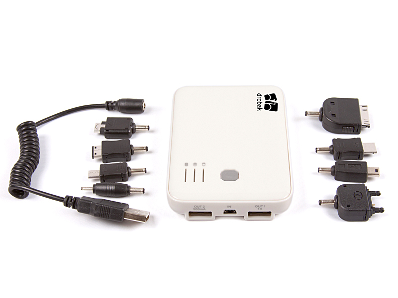 Drobak Power Bank for iPad/iPhone, как заметно из второй части названия, изначально задумана для зарядки устройств производства компании Apple. Этому даже способствует оригинальный внешний вид УМБ: пластиковый, глянцевый корпус, выпускаемый в двух разных цветах (белый и черный), подчеркивает своё родство с iPhone, iPad и iPod Touch. Размер УМБ сопоставим со среднестатистическим смартфоном: 11 см х 7 см х 1,5 см, что позволяет его носить в кармане брюк. А вес УМБ практически как у iPhone 4 - всего 145 грамм.