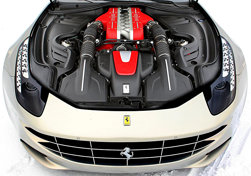 Несмотря на нетрадиционный для Ferrari кузов и решение организации багажника, в техническом плане Ferrari FF - настоящий суперкар. Шутка ли, под капотом у новоиспеченного итальянского дорожного болида расположился 6,2-литровый двенадцатицилиндровый мотор мощностью 660 л.с. Максимальный крутящий момент силового агрегата составляет 683 Нм, и доступны они при 6000 оборотов в минуту.
