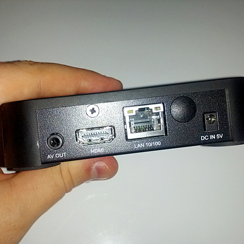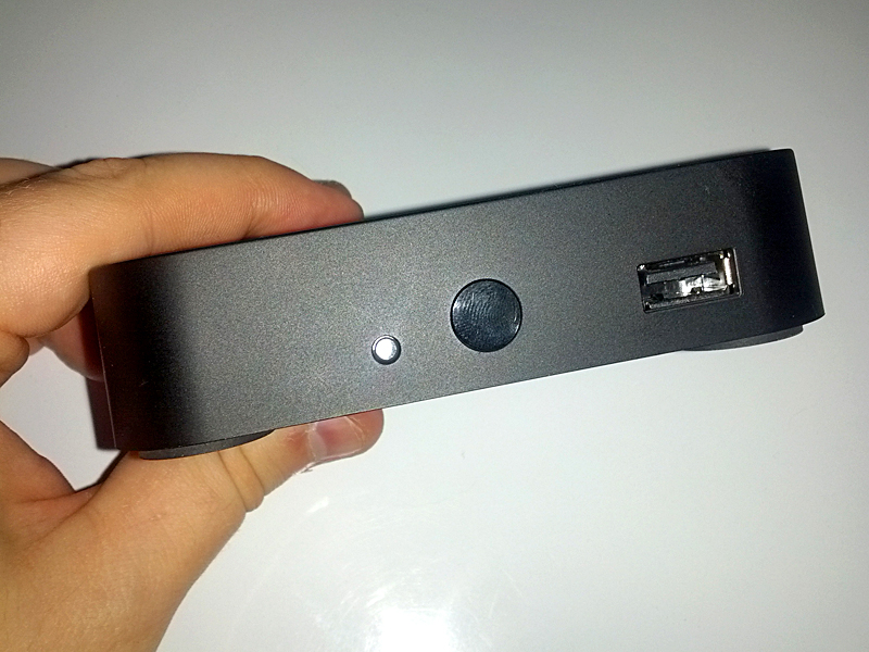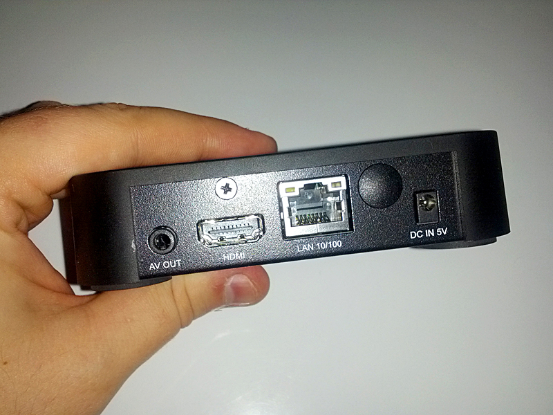 Округлый корпус покрыт прочным матовым пластиком черного цвета, на котором не остаётся никаких отпечатков пальцев (сейчас в моде, почему-то, пачкающийся глянец). Низ и часть тыльной стороны металлические, видимо, специально сделано для теплоотвода. На тыльной стороне расположены различные входы и выходы: HDMI 1.3, Ethernet-порт (100 Мбит/с), AV OUT и гнездо питания.