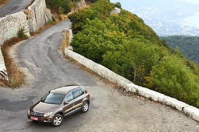 Очень понравились настройки подвески и "хваткие" тормоза. Несмотря на приличный (200 мм) клиренс и высокий кузов, Tiguan отлично держится в поворотах и не "клюет носом" при интенсивном торможении.