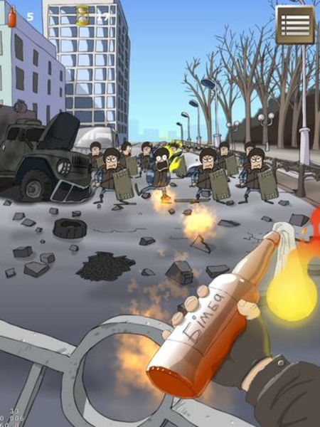 Игра довольно детально описывает события Майдана. В каждом уровне нужно с помощью коктейлей Молотова зачищать улицы Киева от сотрудников милиции и Беркута. Создатели игры сохранили хронологию событий, и говорят, что при достижения 6-го бонусного уровня откроется миссия в России.