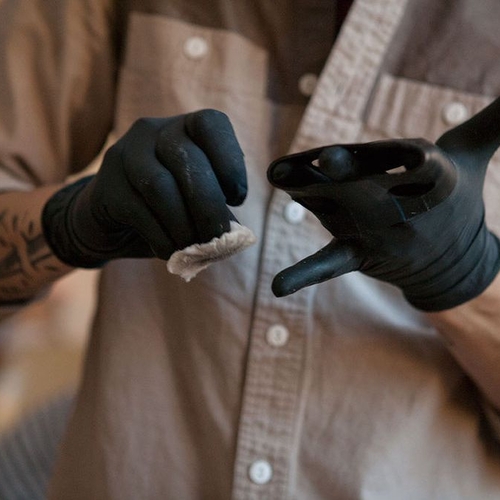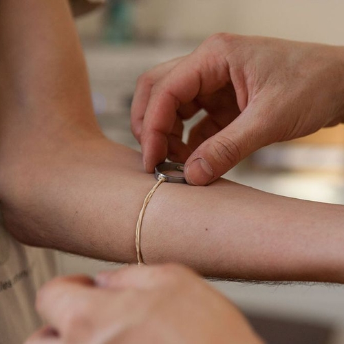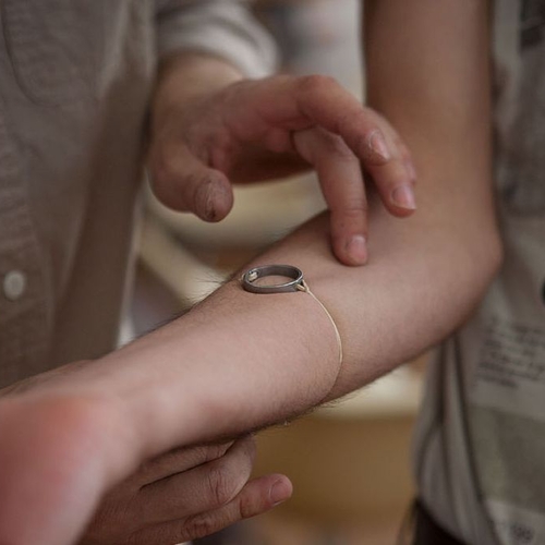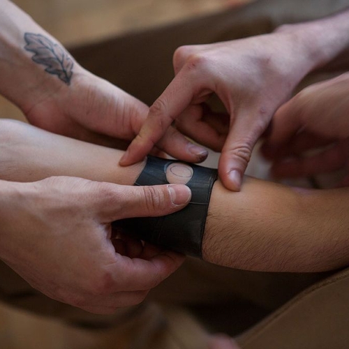 Для фиксации руки клиента студенты решили использовать трубу от обычного скутера с отверстием, вырезанным на месте татуировки.