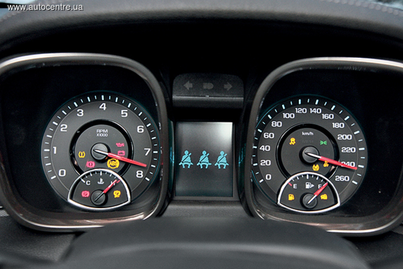 Впрочем, обновленные версии с измененной передней частью и торпедо еще не появились в продаже на украинском и европейском рынках. Хотя, может, американцы слишком балованные, ведь и тестовая, дорестайлинговая машина смотрится свежо. Несомненная заслуга в этом ноток от купе Camaro. Стоит взглянуть на корму, чтобы увидеть знакомую камаровскую заднюю оптику.