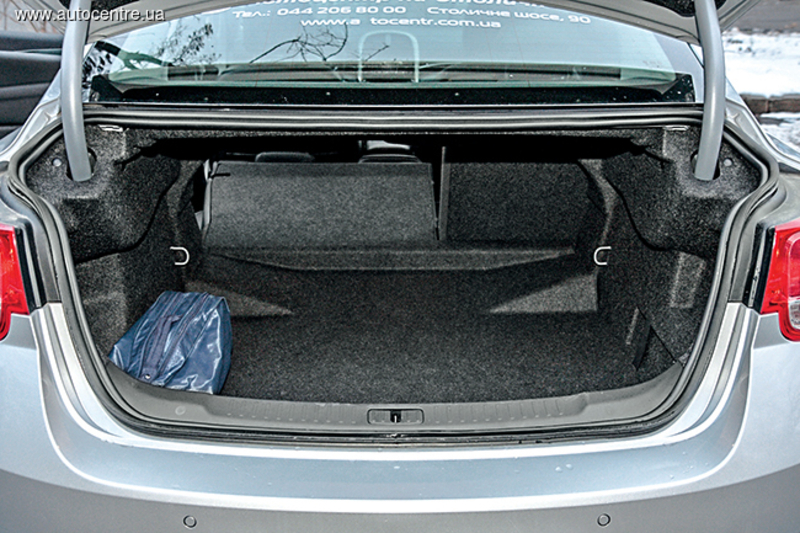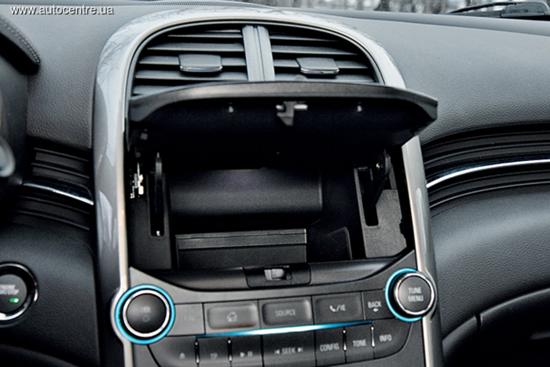 На тест мы выбрали наиболее богатую версию Malibu в комплектации LTZ. Первое и главное отличие этого оснащения – кожаный салон. Из менее заметных – бесключевой доступ и запуск мотора кнопкой, двухзонный климат-контроль, передние кресла с памятью и трехступенчатым обогревом. Внешне самую дорогую модель можно узнать по люку в крыше, биксеноновым фарам и колесным дискам R18.