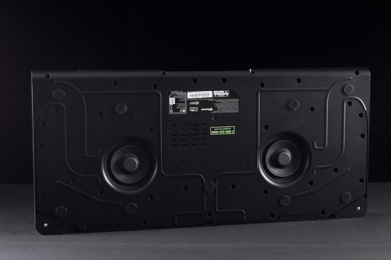В компактном корпусе толщиной всего 35 мм южнокорейский производитель смог разместить полноценную 4.1 мультиканальную систему объемного звучания с двойным сабвуфером мощностью 120 Вт. За качество звука здесь отвечают цифро-аналоговый преобразователь последнего поколения, а также динамики с двойными неодимовыми магнитами.