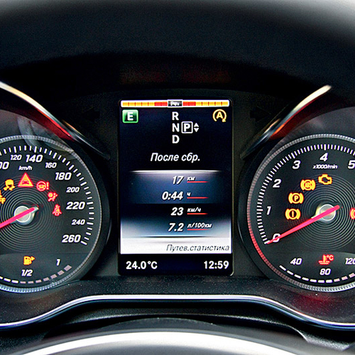 | Кузов стал крупнее, но легче. Если прибавки в динамике это не дало, то немного экономнее седан со 156-сильным мотором все же стал. Даже на пике оборотов двигатель не досаждает громким звуком. Максимальная тяга доступна уже при 1200 об/мин, так что C-сlass практически в любой момент ускоряется настолько уверенно, насколько позволяют его «силенки». | Расход топлива у нас выходил чуть выше заявленного – в смешанном цикле маршрутный компьютер показывал более 7,0 литра на 100 км. |