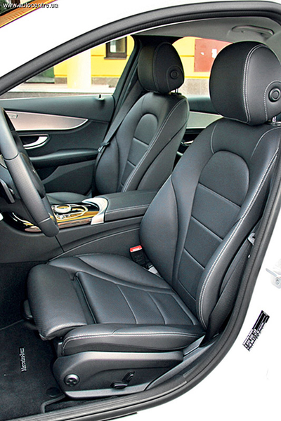 Сзади в Mercedes-Benz C-сlass не так просторно, как в представительском S-сlass, но тоже удобно. А передние кресла обеспечивают хорошую боковую поддержку и удобную низкую посадку. Кстати, правый пассажир также сидит, как в гоночных авто – с вытянутыми почти горизонтально ногами, поставив их на практически вертикальную панель. Такая посадка вполне естественна и не доставляет неудобств.