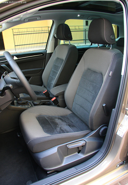 | Колесная база у Sportsvan больше, чем в Golf, что подарило дополнительный простор для ног на втором ряду, а багажник существенно вместительнее. В интерьере все строго и правильно. Все переключатели на своих местах, а алгоритмы их работы максимально логичны. Оборудование самое современное и работает эффективно. | В оформление интерьера почти незаметна «новизна». Спинки заднего дивана можно лишь поставить вертикальнее, но нельзя увеличить наклон. Если говорим о «премиуме», то можно было поставить функцию электрического управления дверью багажника. |