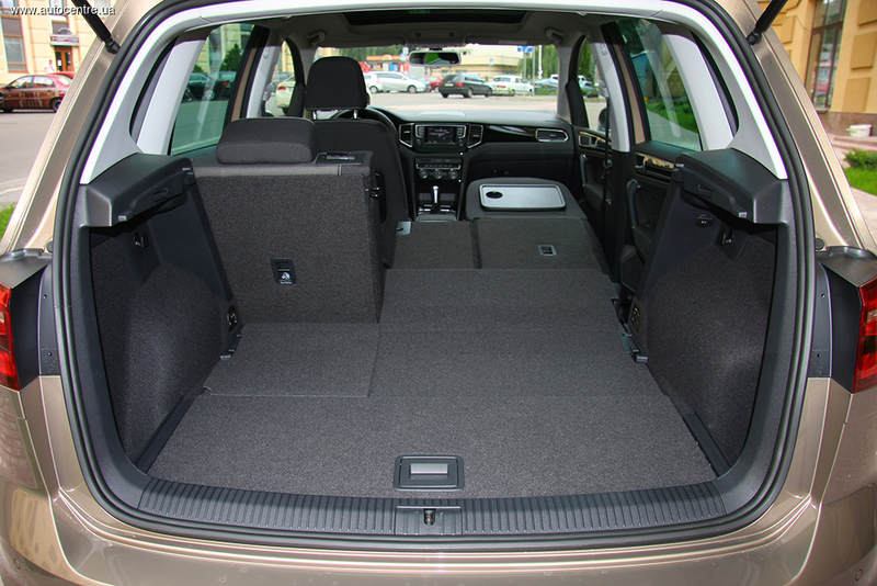 В плечах троим пассажирам будет тесновато, а среднему создаст определенные неудобства еще и высокий трансмиссионный тоннель. А вот по величине колесной базы и длине Sportsvan превосходит хэтчбек Golf более существенно, чем по ширине. И если на обоих рядах сидят люди среднего роста, то задний можно сдвинуть вперед на 18 сантиметров. При этом там все равно помещается человек среднего роста. В таком случае объем багажника увеличивается на 90 литров. А если еще и спинки заднего дивана поставить вертикальнее, то можно перевезти, скажем, крупную коробку.