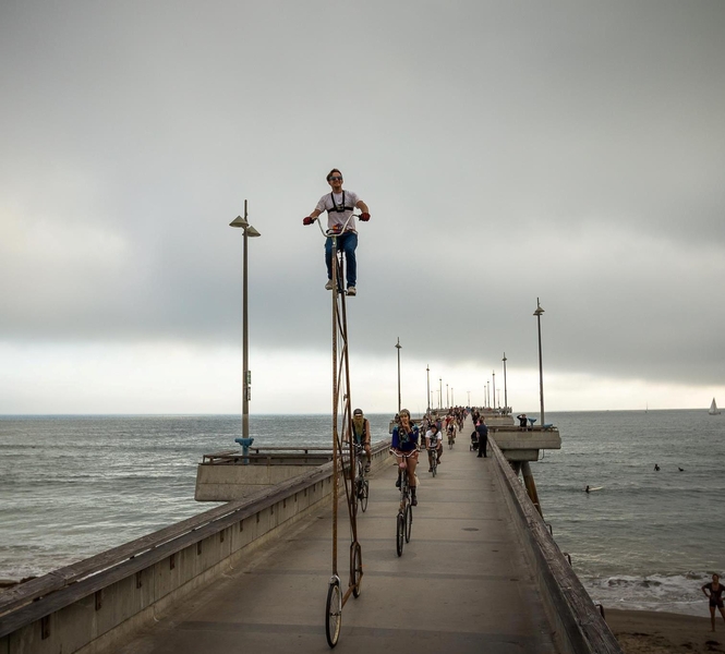 Американский велолюбитель спроектировал аппарат, прокатиться на котором будет не так уж и просто. Все из-за того, что новое изобретение высотой 6 метров