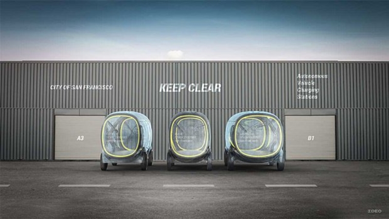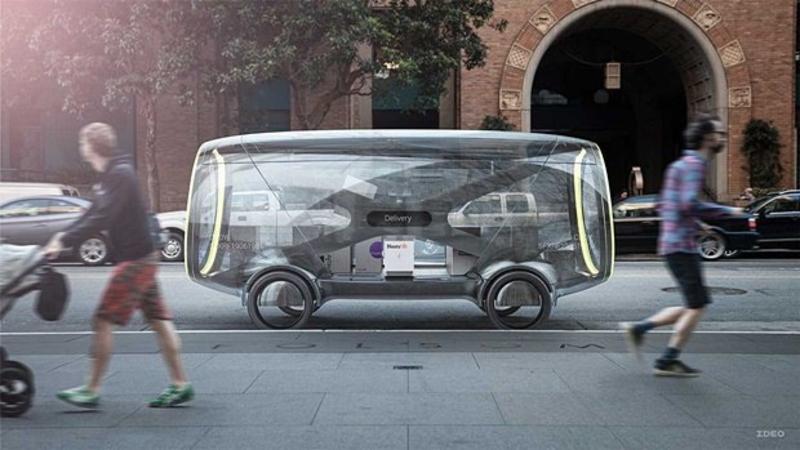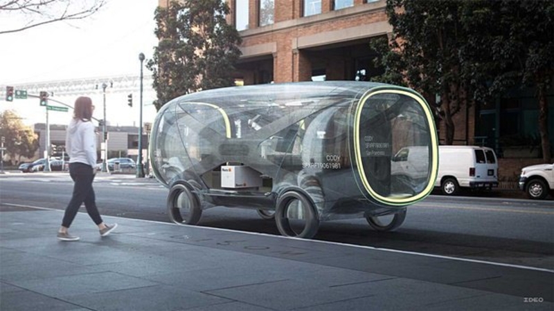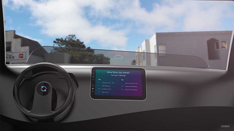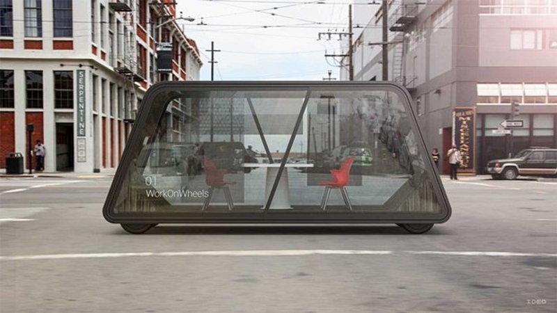 Ideo уверены: появятся машины, в которых можно будет проводить даже деловые встречи. Они намекают на появление стеклянных фургонов на колесах с магнитными держателями мебели, презентационных дисплеев, доступом к интернету, и функцией затемнения стекол.