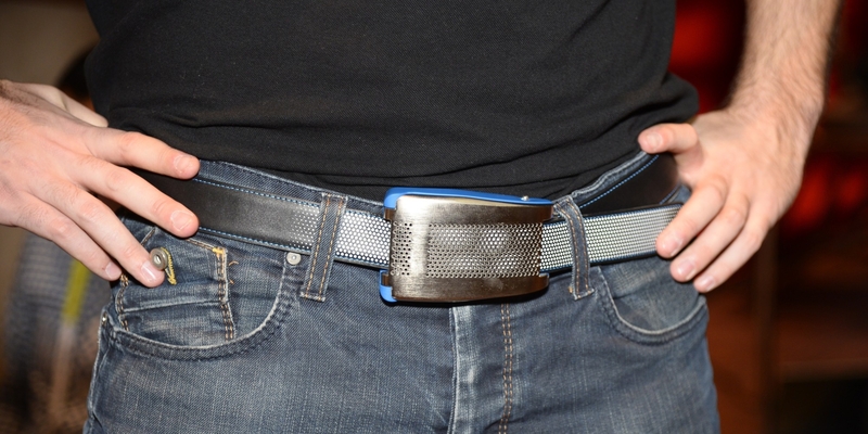 Это ремень, который оснащен “умной“ пряжкой. Последняя автоматически определяет силу натяжения брюк на бедрах, и при внезапном наклоне или приседании она ослабляет ремень. И это еще не все. Belty также: