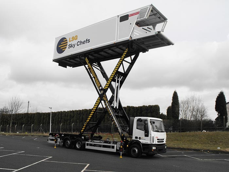 Загружать контейнеры с едой в самолеты типа Boeing 747 или Airbus A380 не так уж и легко. Поэтому создан Mallaghan CT8000 — специальный автолифт, способный вес до 5,5 тонн поднимать на высоту до 8,4 метров.