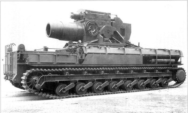 Советская самоходная 420-мм минометная установка. Скорострельность — 1 выстрел в 5 мин. Дальность стрельбы — 25 км, активно-реактивной миной — 50 км. Вес мины — 670 кг.