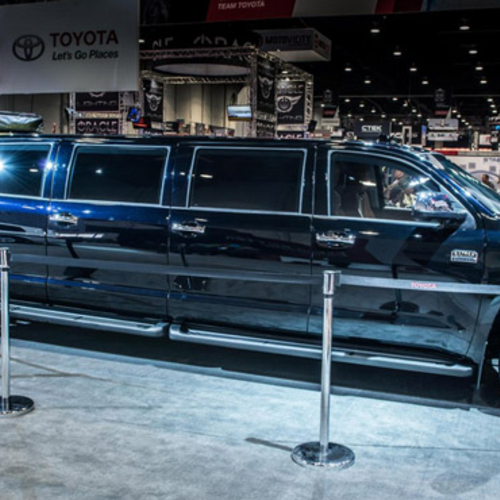 Специально для тюнинг-шоу SEMA 2015 японцы взяли свою «Тундру», и удлинили пикап практически в 2 раза. Растянуть машинку пришлось почти на 2,5 метра, что позволило добавить в конструкцию автомобиля две пары дверей и два ряда сидений. При этом пикап-лимузин сохранил погрузочную платформу.