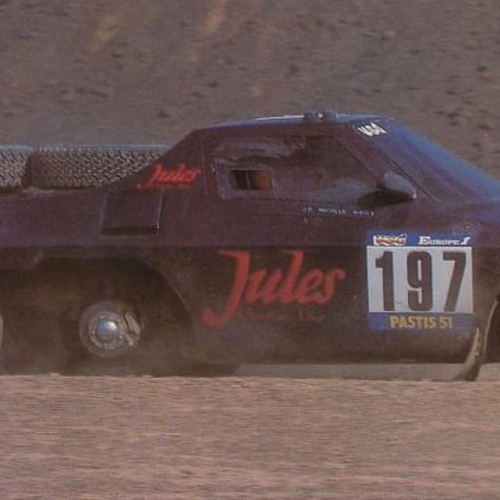 В 1984-м все тот же упрямый Тьерри де Монгорже снова решил сражаться за победу. Но на этот раз не на роскошном седане, а на 6-колесном Jules II Proto. Это машина-прототип, оснащенная 3,5-литровым мотором Chevrolet и трансмиссией от Porsche 935. Имя тачке досталось от парфюма спонсора Christian Dior. Тьерри так и не доехал до финиша. Причина: поломка шасси.
