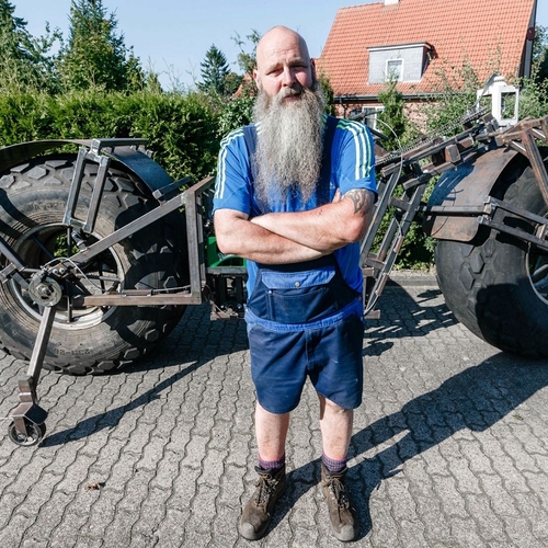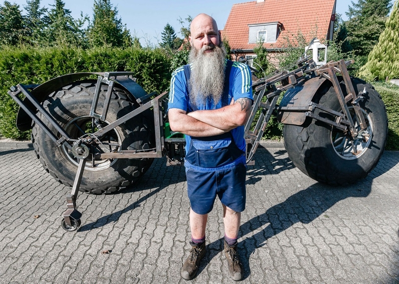 Имя "мастера" — Фрэнк Доз. Это 49-летний дальнобойщик из немецкого городка Шахт-Аудорф. Недавно он соорудил велосипед весом 940 кило
