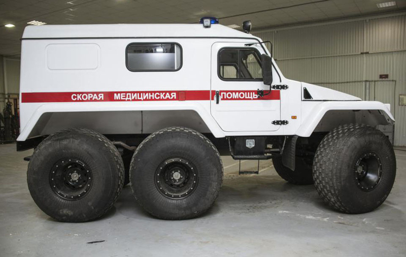 Российский шестиколесный вездеход, переделанный в скорую помощь. На борту имеется два бензиновых движка объемом 2,3 и 2,7 литра + один 2,5-литровый дизель. Предназначен для езды по суровому российскому бездорожью, а не арабской асфальтной глади.