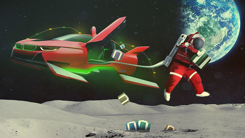 Настоящий космический корабль на базе гибридной двухдверки BMW i8. На нем Санта полетит на Луну.