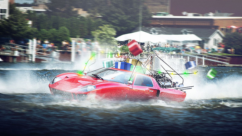 Еще один водный конь для Санты. Кажется, с двумя навесными моторами. Последние похожи на V8, но не факт.
