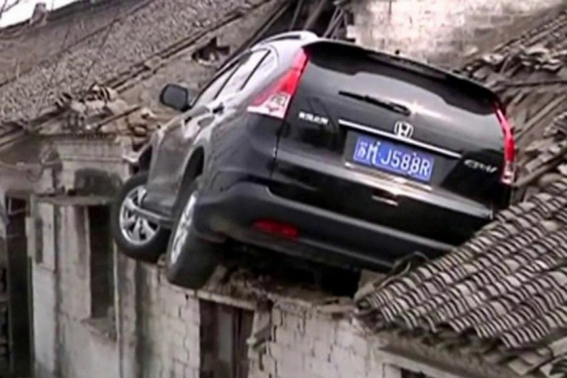 Март 2017, Китай. Водитель Honda CR-V едет со скоростью 70 км / час и никого не трогает. Вдруг перед ним появляется велосипедист. Водитель путает педали и случайно жмет на газ. И вот где он в итоге оказывается.