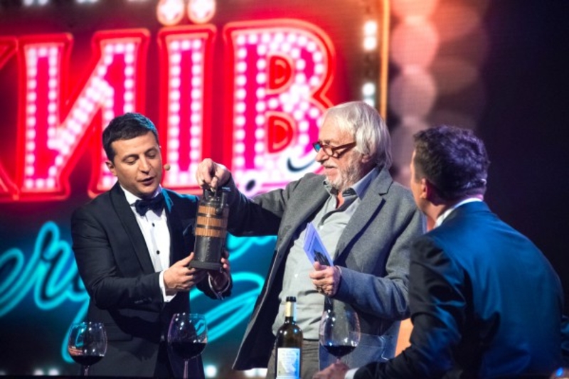 Тот же Зеленский, который пару лет назад пригласил на съемки 95 квартала Пьера Ришара. Как думаешь, что он преподнес в подарок знаменитому французу? Не поверишь: Владимир подарил Пьеру 50 граммов водки, выгнанной прямо на сцене из подаренного аламбика, купленного в одноименном интернет-магазине + зеленый украинский квашеный огурец.