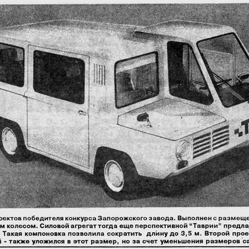 Конец 1970-х, на ЗАЗ объявили внутризаводской конкурс — придумать лучший дизайн авто типа такси. Один из призеров — прототип на базе “Таврии“ длиной в 3,5 метра и с кабиной водителя над левым передним колесом. Машина так и осталась “на бумаге“.