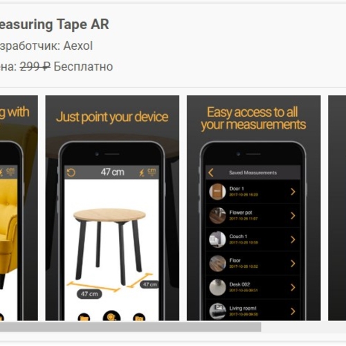 Приложение использует дополненную реальность и камеру вашего смартфона, чтобы измерять различные предметы. Наведите смартфон на что-либо, и приложение вычислит размеры объекта.