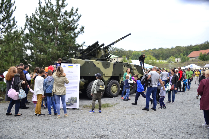 Недавняя разработка Харьковского конструкторского бюро машиностроителей им. А.А. Морозова привлекла к себе максимальное внимание мужской части посетителей техфеста всех возрастов. Бронетранспортер стал одной из тех достопримечательностей с которой хотел сфотографироваться практически каждый проходивший мимо. Гости могли не только полюбоваться на новинку военной техники, но и заглянуть внутрь кабины, а также увидеть, как вращается боевой модуль на крыше БТР.