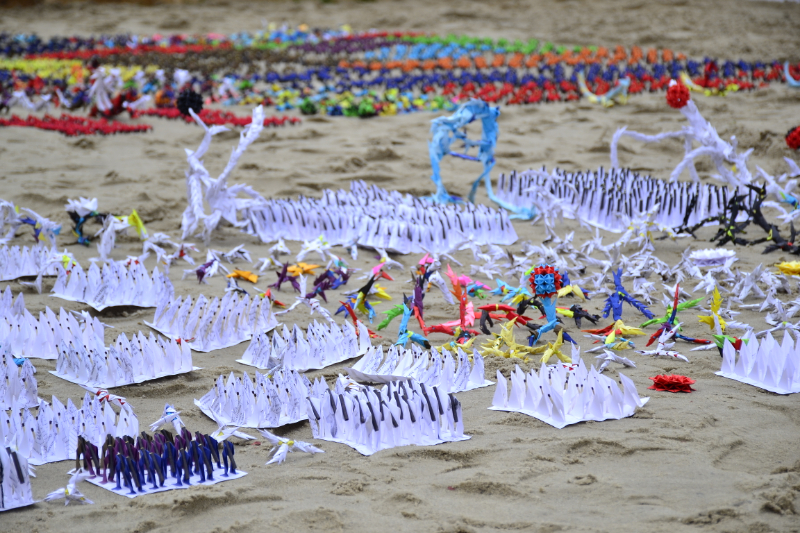 В воскресенье в 16:00 лыжный склон парка «Лавина» был заполнен зрителями. На песчаной площадке выстроились 5 500 бумажных воинов-оригами. Пехота, командиры, драконы и чудовища приготовились к огненному сражению. Украинский учёный Юрий Гончаров потратил 40 месяцев, чтобы создать эту армию. И в течение 30 минут две команды волонтёров, устроили битву-соревнование, используя «бомбы» из ваты и шприцы, чтобы сжечь как можно больше солдат противника. В конструкции каждого воина была заложена петарда, поэтому даже те зрители, которым не удалось занять место с хорошим обзором, прекрасно слышали получасовой салют, гремевший на склоне.