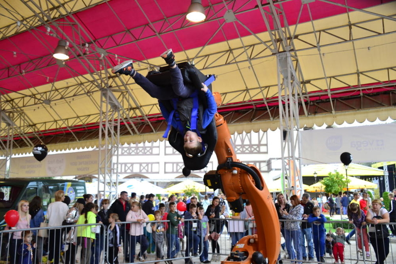 Промышленный робот серии KR QUANTEC ultra стал одной из сенсаций техфеста. Способная выполнять сверхточные работы и поднимать до 300 килограмм роборука превратилась в высокотехнологичный аттракцион для детей и взрослых. Любой желающий мог занять кресло, прикрепленное к центральной руке робота и прокатиться на вращающейся и переворачивающейся карусели. В Украине подобных аттракционов еще нет. Хотя они широко применяются в парках развлечений в странах Европы и Америки.
