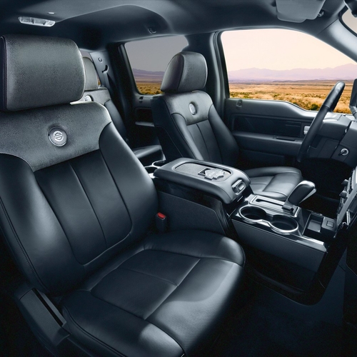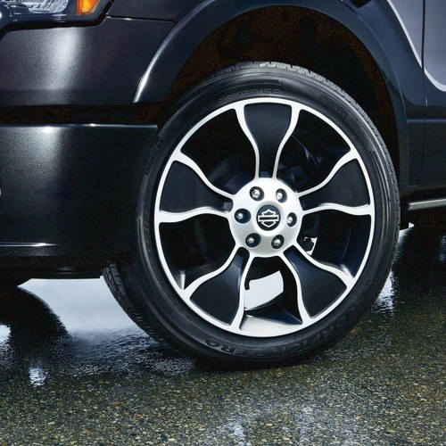 К техническим новациям F-150 относятся 22-дюймовые алюминиевые диски, обутые в низкопрофильные шины. Плюс к тому - тонированные передние и задние фары, хромированная радиаторная решетка.